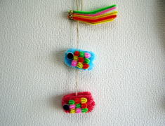 | セット内容 18mmモール・・2本 9mmモール・・3本 3mmモール・・7本 ビーズ4つ 布3枚 作り方説明書。 |