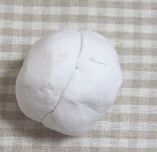 容器に粘土などの詰め物をします。 (写真は紙粘土です)